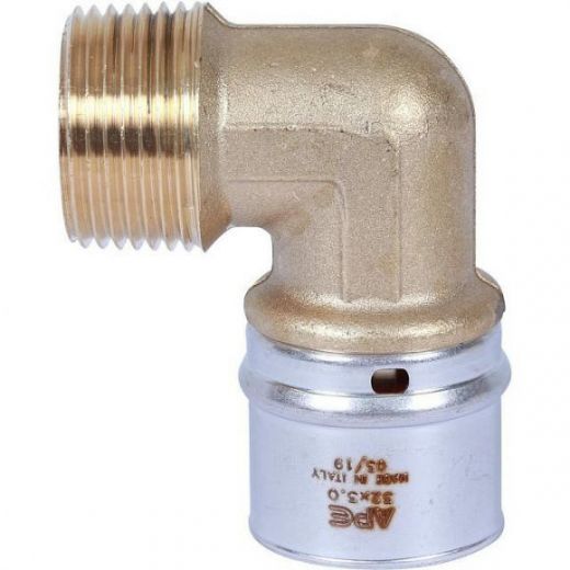 Угольник-переходник с наружной резьбой 32х1" для металлопластиковых труб, прессовой STOUT