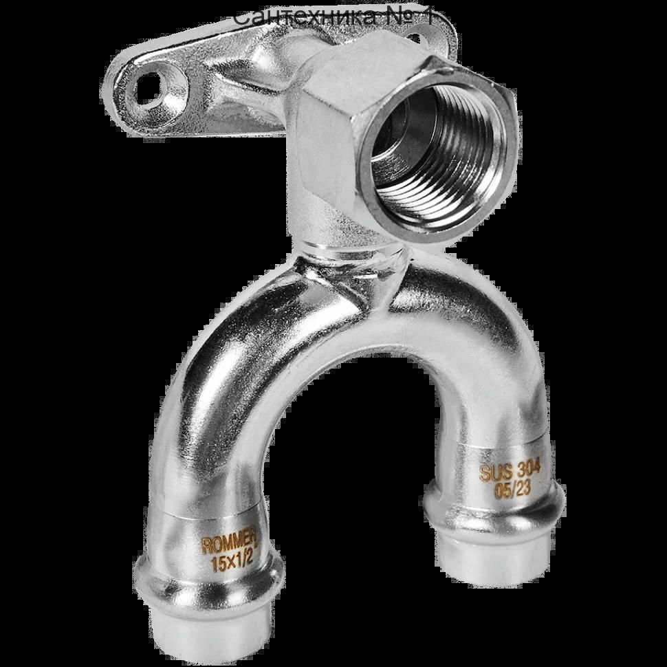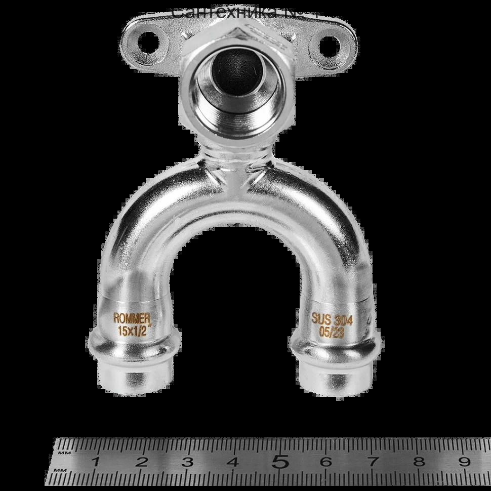 Угольник проходной настенный с креплением ВР 15х1/2 из нержавеющей стали ROMMER