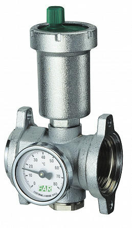Хромированный переходник, дополненный автоматическим клапаном для выпуска воздуха, термометром и сливным краном. Каждая деталь, выпускаемая на заводе FAR, проходит строгий контроль в процессе производства, после чего выборочные партии изделий тестируются в ходе испытаний в специальной заводской лаборатории. Все испытания проводятся в соответствии с требованиями нормативных документов.