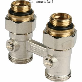 Блок шаровых кранов REHAU используется в системах отопления. Это пара шаровых кранов, применяющихся в качестве запорной арматуры и для соединения радиаторов с нижним подключением и соединительными стальными трубками из серий REHAU. Корпус - латунь, наружная поверхность - никелированная латунь. В комплект входят: прямой блок шаровых кранов с накидными гайками G 3/4", 2 соединительных ниппеля G 3/4" x G 1/2".
