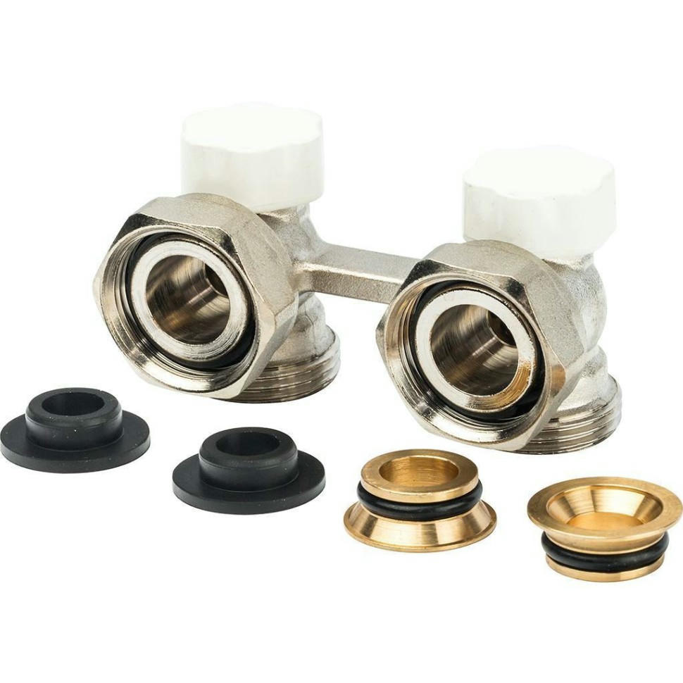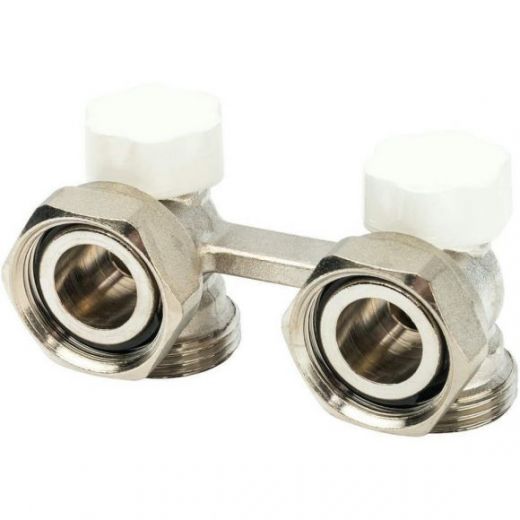 Регулировочные распределители для двухтрубных систем медных и пластиковых труб, с двойным уплотнением. Напольное подсоединение типа евроконус. Угловой блок.