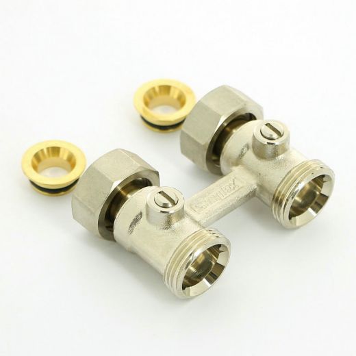 Оцените товар «Узел прямой Standard Line D2/50 НВ 3/4" ЕК х 3/4" ЕК радиаторный со встроенными кранами и адаптерами Simplex»