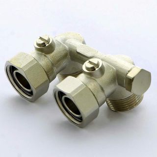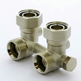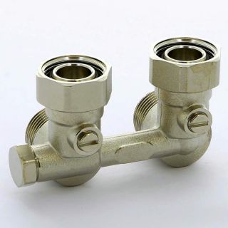 Узел радиаторный НВ 3/4х3/4 ЕК с кранами 2-трубная система с байпасом, угловой Tiemme