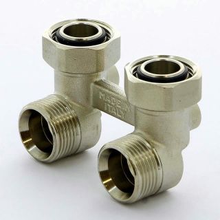 Узел радиаторный НВ 3/4х3/4 ЕК с кранами 2-трубная система, угловой Tiemme