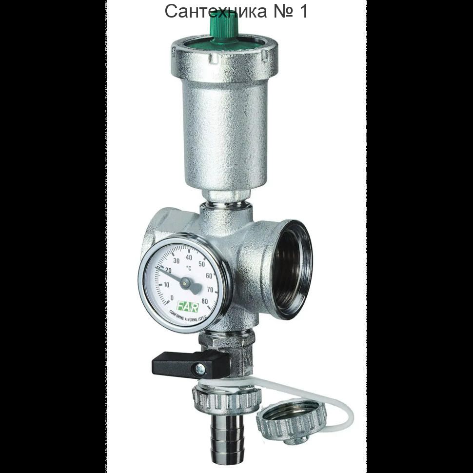 Узел с автоматическим воздухоотводчиком, термометром и сливным краном 1 1/2"хромированный FAR