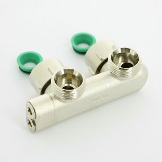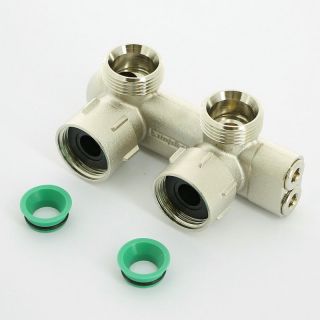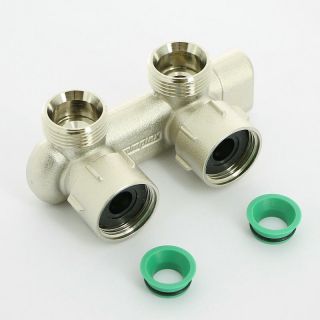Узел угловой перекрёстный E2/50 НВ 3/4" х 3/4" ЕК радиаторный со встроенными вентилями и адаптерами Simplex