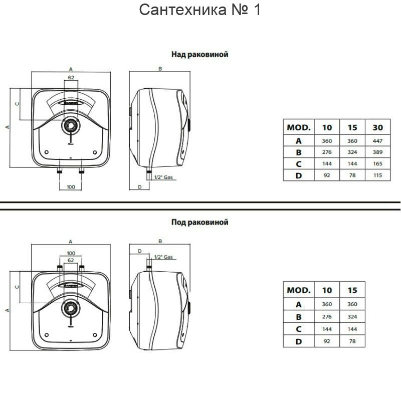 Водонагреватель электрический накопительный 10 л над раковиной ABS ANDRIS LUX 10 OR Ariston