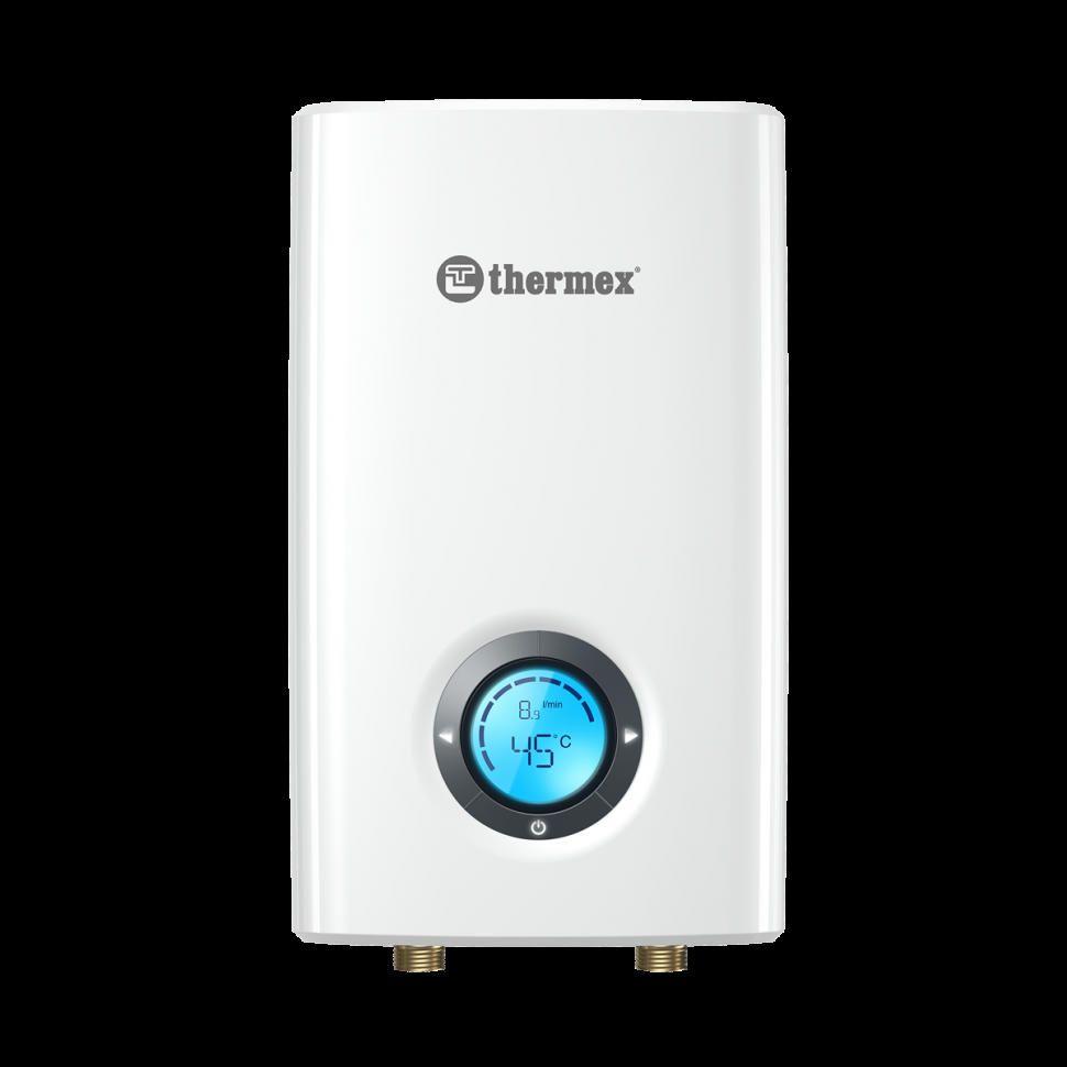 Водонагреватель электрический проточный Thermex Topflow 8000 ? современное оборудование, имеющее стильный облик и компактные размеры. Встраивается устройство в систему водоснабжения и прекрасно справляется с задачей по обеспечению горячей водой, как квартир, так и индивидуальных жилых домов. Модель оснащена рядом встроенных защитных функций: от образования воздушных пробок; от перегрева (двойная защита); от включения без воды. Агрегат безопасен при эксплуатации, собран из надежных и долговечных комплектующих, устойчивых к накипи и коррозии.