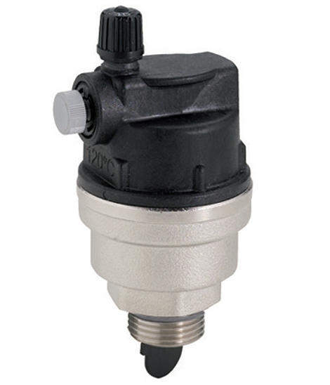 Воздухоспускник с пластиковой крышкой и предохраняющей от загрязнения воздушной камерой с рассекателем пузырей.