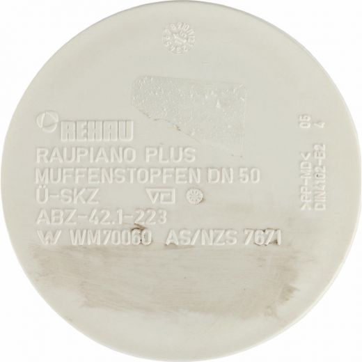 Заглушка Rehau Raupiano Plus применяется для герметичного перекрытия трубопровода. Используется обычно для временного заглушивания до окончания отделочных работ, чтобы не допустить попадания запахов из канализации и во избежании загрязнения раструба.
