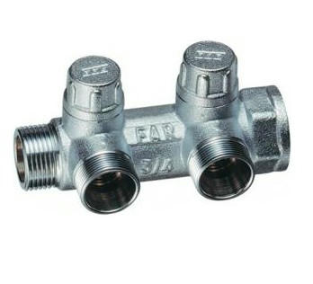 Запорный коллектор распределительный 3/4" НР-ВР с 2 отводами М24х19 FAR