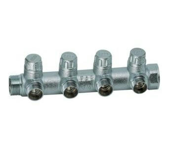Оцените товар «Запорный коллектор распределительный 3/4" ВР-НР с 4 отводами 1/2" НР, хром FAR»