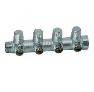 Запорный коллектор распределительный 3/4" ВР-НР с 4 отводами 1/2" НР, хром FAR